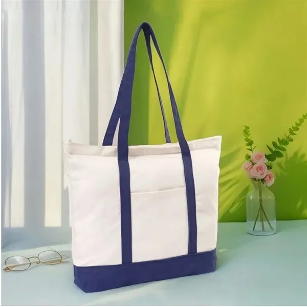 Additional InformationStylish and versatile 100% cotton tote with top zipper closure - perfect for beach, school, work, travel, gym, and more.