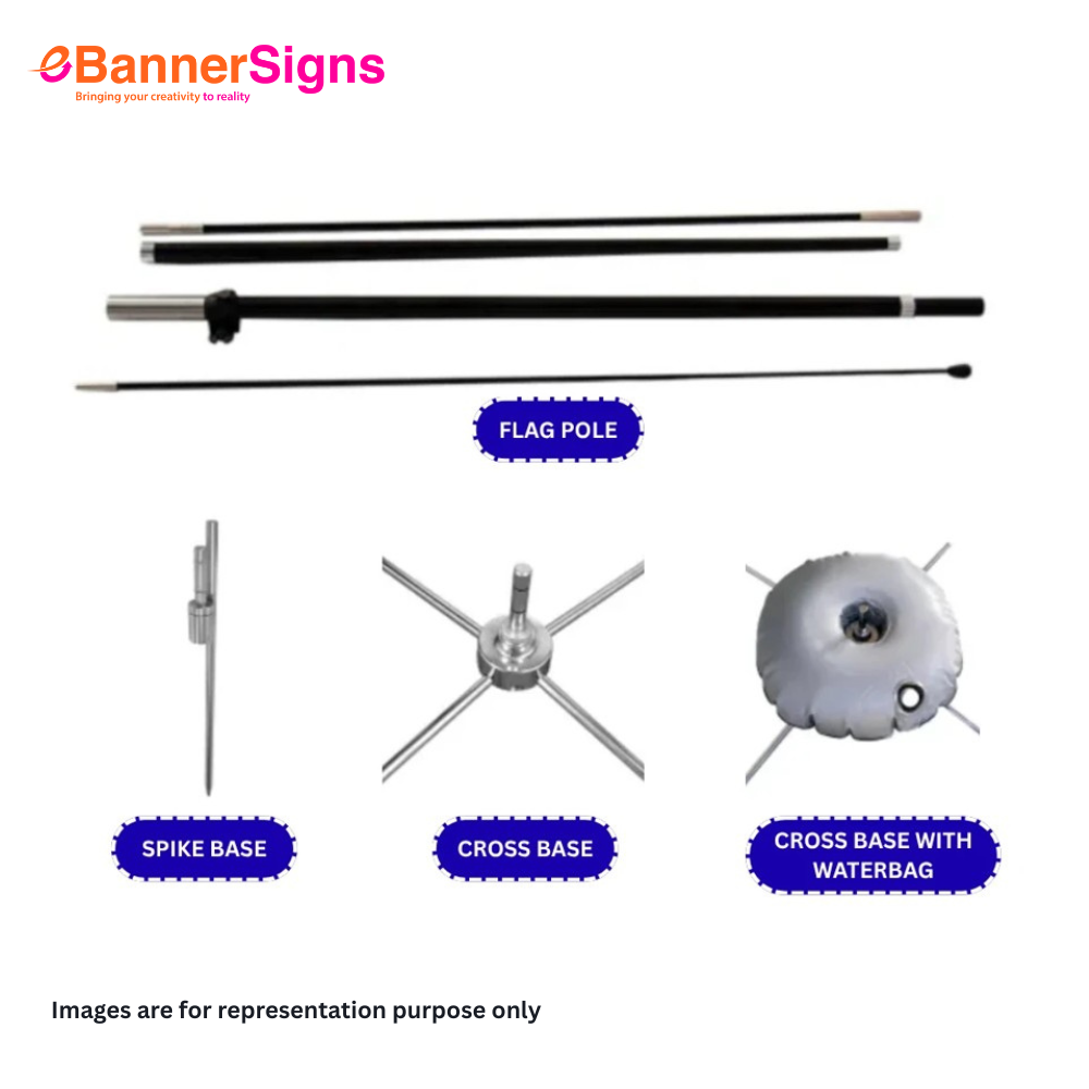 For installation flexibility, select your base—spike base for lawn/earth settings, or cross base for hard surfaces and event floors. Setup is tool-free and quick, so you’re ready for action at outdoor festivals, sidewalk sales, trade show exhibit aisles or storefront activations.